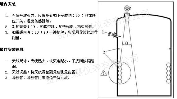 1雷達天線不可向罐壁傾斜。